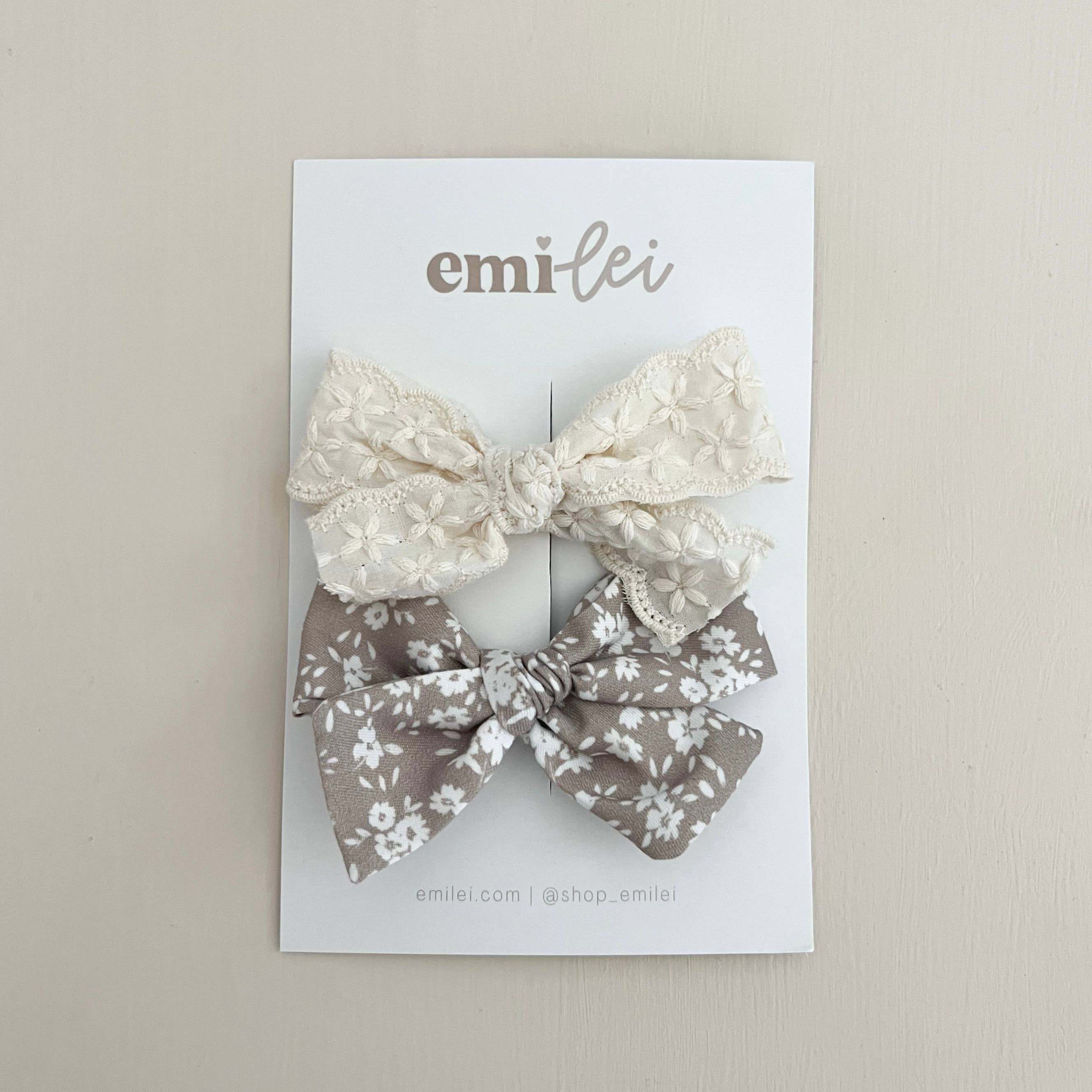 Alligator Clip Bow Set - Linen Lace/Neutral Floral (#6)
